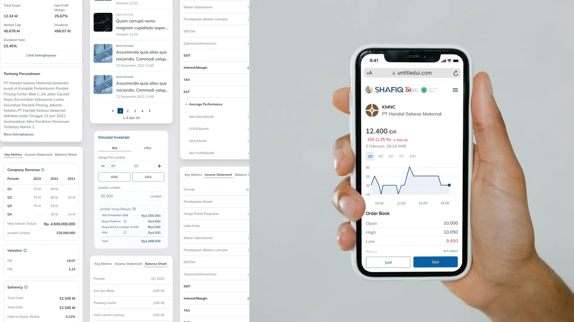 This project originated from my current full-time workplace, where SHAFIQ, a crowdfunding service provider that issues shares, sought to implement a secondary market program. Since its establishment in 2020, SHAFIQ had not yet introduced a secondary market. Consequently, developing this new feature required a learning process for me to understand the schemes and workflows from both business and user perspectives. The design process started from scratch, covering both user and admin dashboard interfaces.