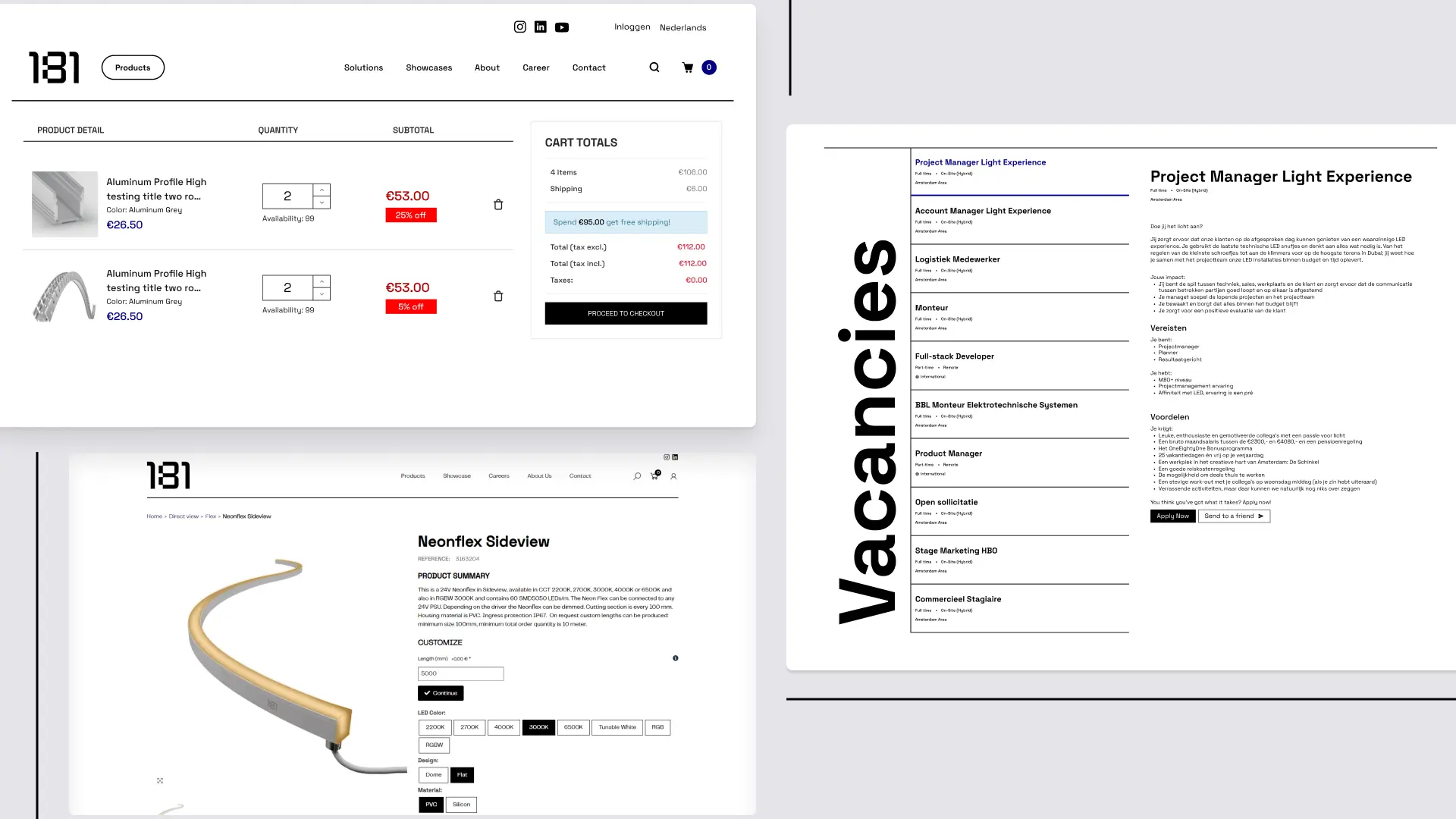 Founded in Amsterdam, Netherlands, 181 is a renowned lighting manufacturer known for their innovative and sustainable lighting solutions. With a strong presence in both the local and international markets, they aim to illuminate homes and businesses with their high-quality products. Despite having an official website complete with an e-commerce platform, they faced significant challenges in delivering a seamless online shopping experience to their customers. As a freelance designer, I was approached by the CIO to conduct product research and competitor analysis, focusing on user needs, identifying areas for improvement, and offering best practice recommendations.